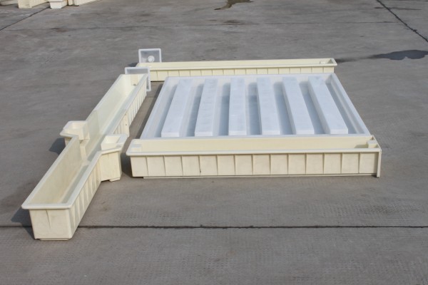 而其中采用PP聚丙烯材質的,則是水泥圍欄塑料模具中的欄片模具,7幅設計,尺寸為149.5*140.5*9cm,PP聚丙烯具備非常高的韌性,針對大面積施工的水泥制品模具有著相當好處,特別牢固且不易碎。缺點則是儲存不當容易造成水泥模具變形,而造成模具報廢,所以在儲存過程中一定要整齊疊放于平地。