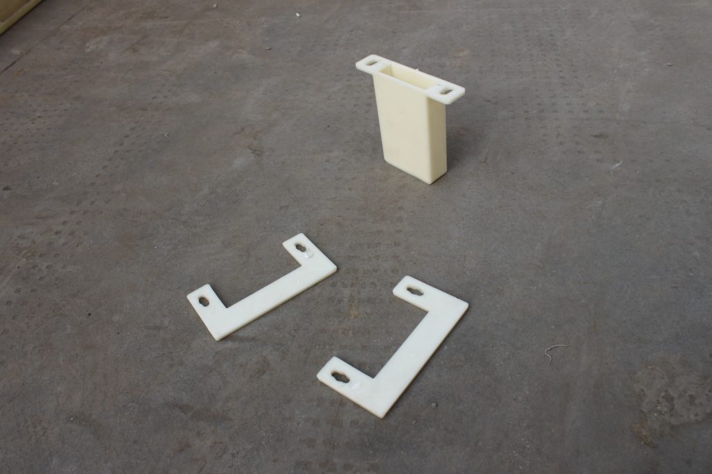 整體樣式來講,疏散平臺支架模具以7字形結構設計為主,搭配2個小型配件,分別是插銷小盒子與墊片,同樣采用ABS塑料加工而成。7字型設計最大的功能就是具備有效支撐力量的同時還降低了地鐵線路周邊空間的使用率。
