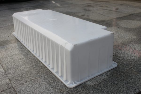這款混凝土路側石模具采用的是聚丙烯樹脂,韌性較高,不易損壞,是現今國家重點道路采用最為廣泛的一款水泥預制模具。從外觀結構上來看,首先聚丙烯塑料材質的混凝土路側石模具以雙邊缺角設計為主,底部直角邊則以防撞型倒角設計。