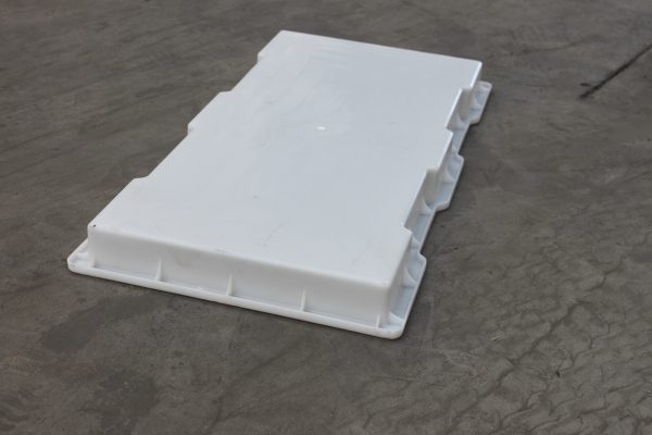 一般來講,常規的下水溝蓋板塑料模具基本采用雙邊單缺口設計,而這款為何是雙邊雙缺口設計呢?原因起始很簡單,主要就是這款下水溝蓋板塑料模具尺寸較大,實際預制水泥下水溝蓋板較沉重,四缺口設計更有利于施工人員運送搬放及安裝。