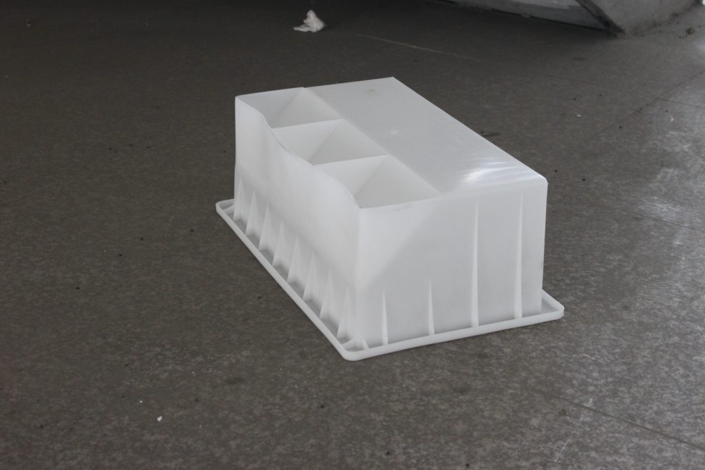 基本上道牙石塑料模具多采用聚丙烯塑料經過高溫注塑加工完成,也就是人們常說的PP塑料。此個道牙石塑料模具主要結構為坡型防撞設計,所預制水泥道牙石有效的提高了行駛車輛碰撞道牙的安全系數。