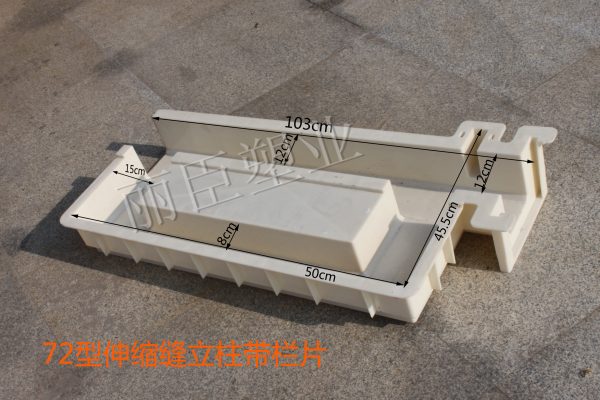 那么這個72型伸縮縫立柱帶欄片模具是怎么來的呢?眾所周知,高鐵護欄在鋪設過程中,主要水泥護欄模具有72型、74型、80型、82型等,每一種護欄模具在預制水泥護欄進行施工時,總會有部分區域是沒有辦法用整套護欄模具來預制的,就例如高低差位置、間隙較小區域等,這個時候,使用帶伸縮圍立柱和欄片的模具來預制水泥護欄配件,可有效提升整體的施工進度。