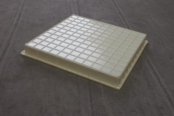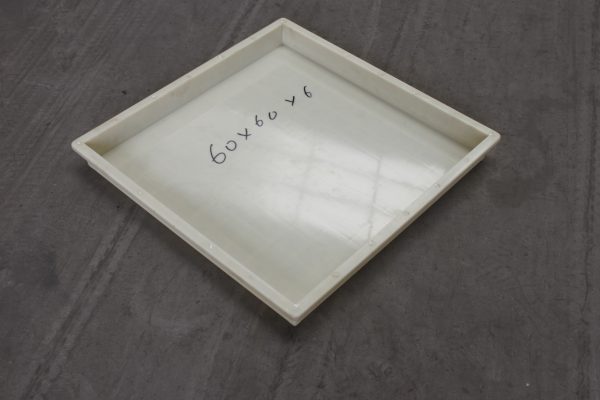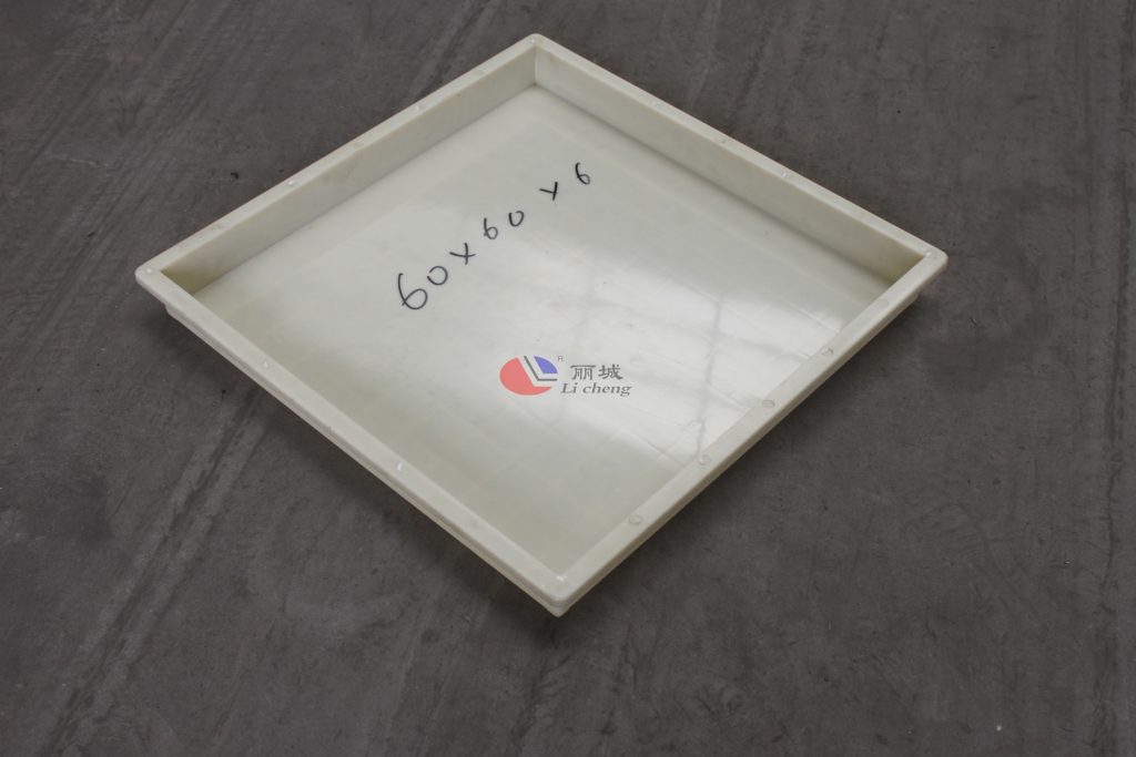 ABS材質的平面路沿石塑料模具,尺寸為較為常用60*60*6厘米,在塑料模具的底部以11*11小方格加強筋設計,側面四周為9*4跟加強筋設計,極大的緩解了水泥制品塑料模具易變形問題。