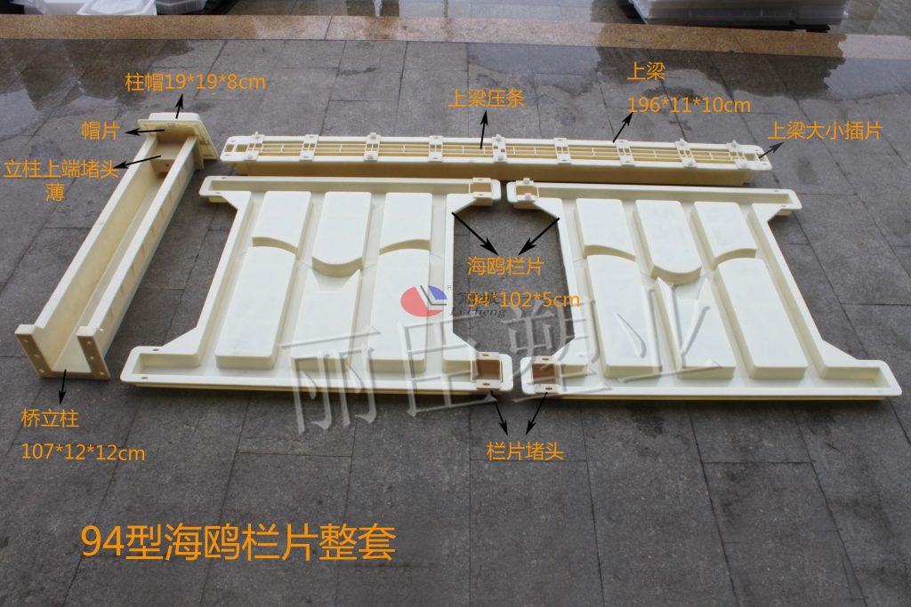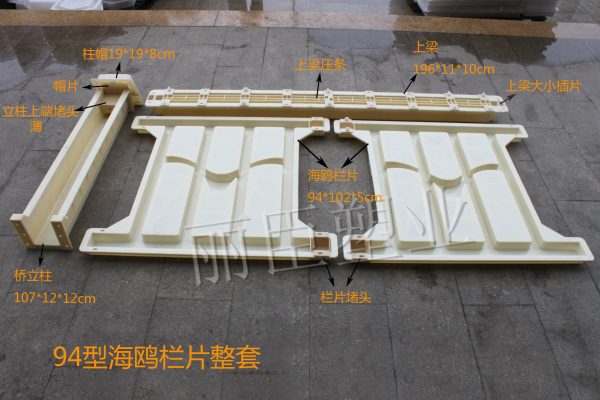 這款94型海鷗橋梁欄桿塑料模具在設計上與72型工字型橋護欄上略有些區別: