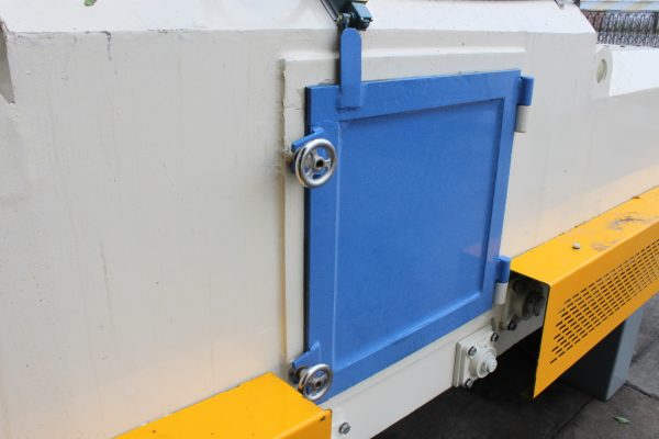 4.在將水泥地磚輸送至混凝土路面拋丸機(jī)內(nèi)部中后,通過(guò)使用步道磚模具澆筑成型的混凝土步道磚,受到來(lái)自空間結(jié)構(gòu)的不同方向的拋頭的密集強(qiáng)力彈丸的打擊與摩擦,使其其表面毛化,美飾。地面磚表面獲得一定的粗糙度的光潔表面,路面拋丸機(jī)在工作時(shí),工作人員需要遠(yuǎn)離室體進(jìn)出口處,防止彈丸飛濺入眼,并需要進(jìn)行掛牌警示。