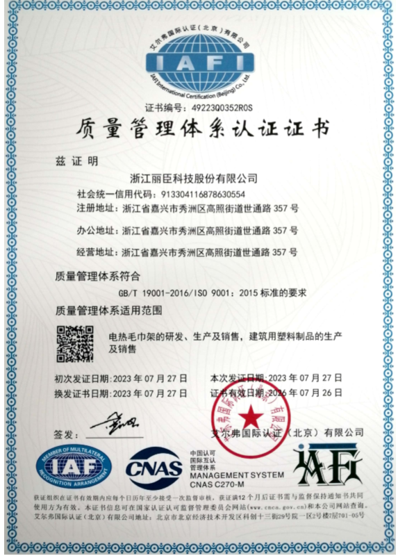 電熱毛巾架的研發,生產及銷售,建筑用塑料制品的生產及銷售
