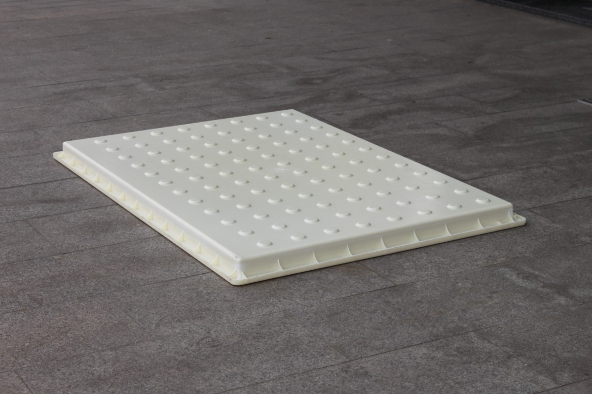 疏散平臺蓋板模具主要以表面凸起圓點設計,由于蓋板成品主要使用于地鐵疏散平臺,所以凹凸圓點圖案可以起到防滑功效,避免行人在急忙之中產生滑倒等傷害因素。