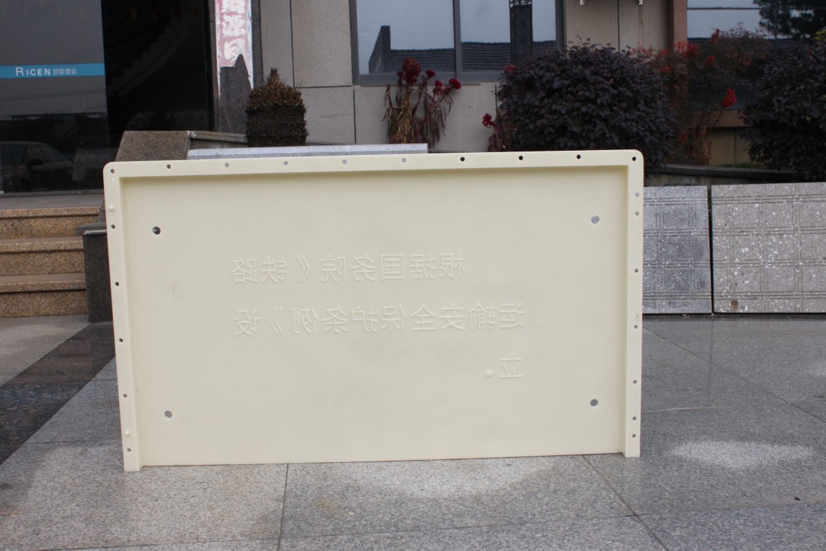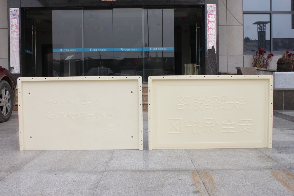 標(biāo)識(shí)牌塑料模具主要的結(jié)構(gòu)為2快拼合而成。標(biāo)識(shí)牌總共分為2個(gè)部分:一面印有“國(guó)家鐵路安全線路保護(hù)區(qū)”字樣,另一面為“根據(jù)國(guó)務(wù)院《鐵路安全運(yùn)輸保護(hù)條例》設(shè)立”字樣。此水泥警示牌模具為國(guó)家中鐵局定制,任何企業(yè)及個(gè)人制造都需國(guó)家鐵路局授權(quán)許可才可制造生產(chǎn)。