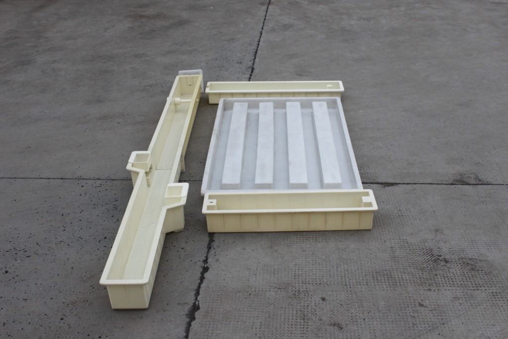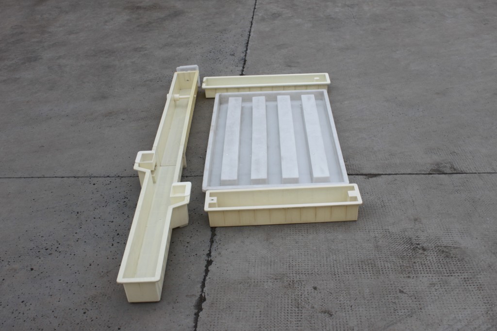 欄片模具則采用PP聚丙烯材質(zhì),更好的模具韌性對施工面積較大的水泥制品更為有利。水泥護欄欄片模具的尺寸為149.5×96.5x9cm,采用5幅式欄桿設計。